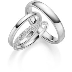 Ihr Antragsring soll später perfekt zum Ehering passen? Kein Problem! Wir bieten Ihnen perfekt passende Kombinationen aus Verlobungsring und Ehering.