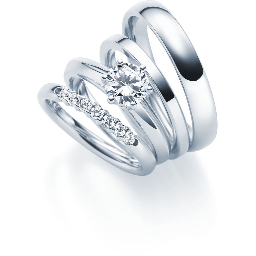 Ihr Antragsring soll später perfekt zum Ehering passen? Kein Problem! Wir bieten Ihnen perfekt passende Kombinationen aus Verlobungsring und Ehering.
